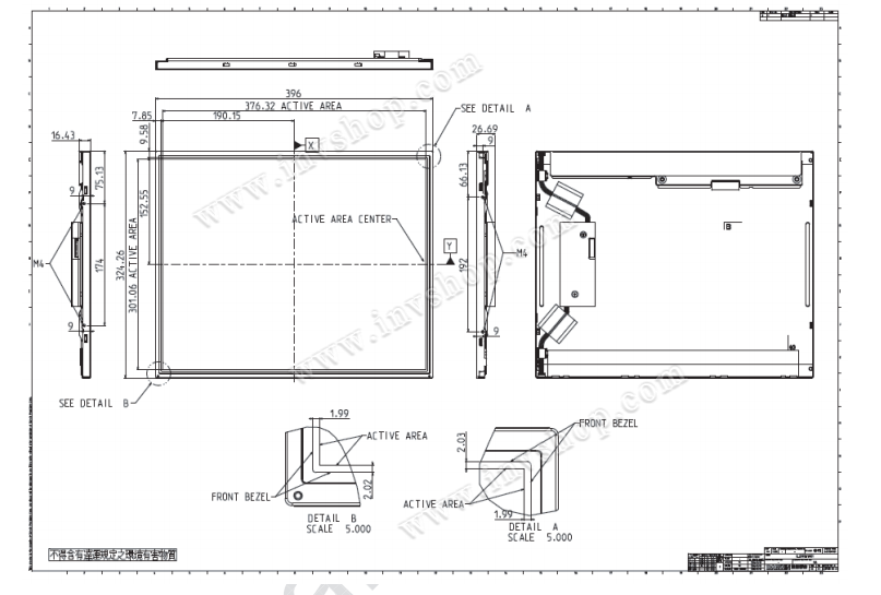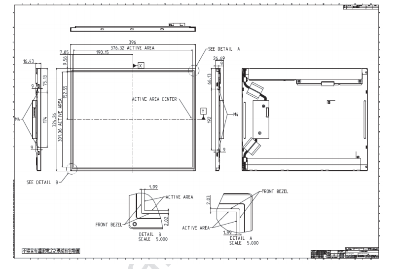 G190ETN01.600 is a 19-inch TFT LCD display module with an aspect ratio of 5:4, offering a resolution of 1280x1024 (SXGA) and an LVDS interface for stable signal transmission.