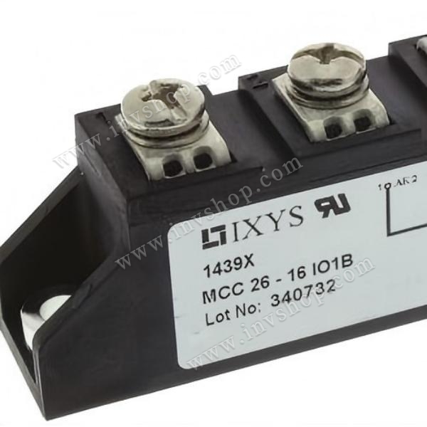 The MCC26-16IO1B, manufactured by IXYS (now part of Littelfuse), is a state-of-the-art, high-power dual-diode module from the MCC family, offered here as a brand-new unit.